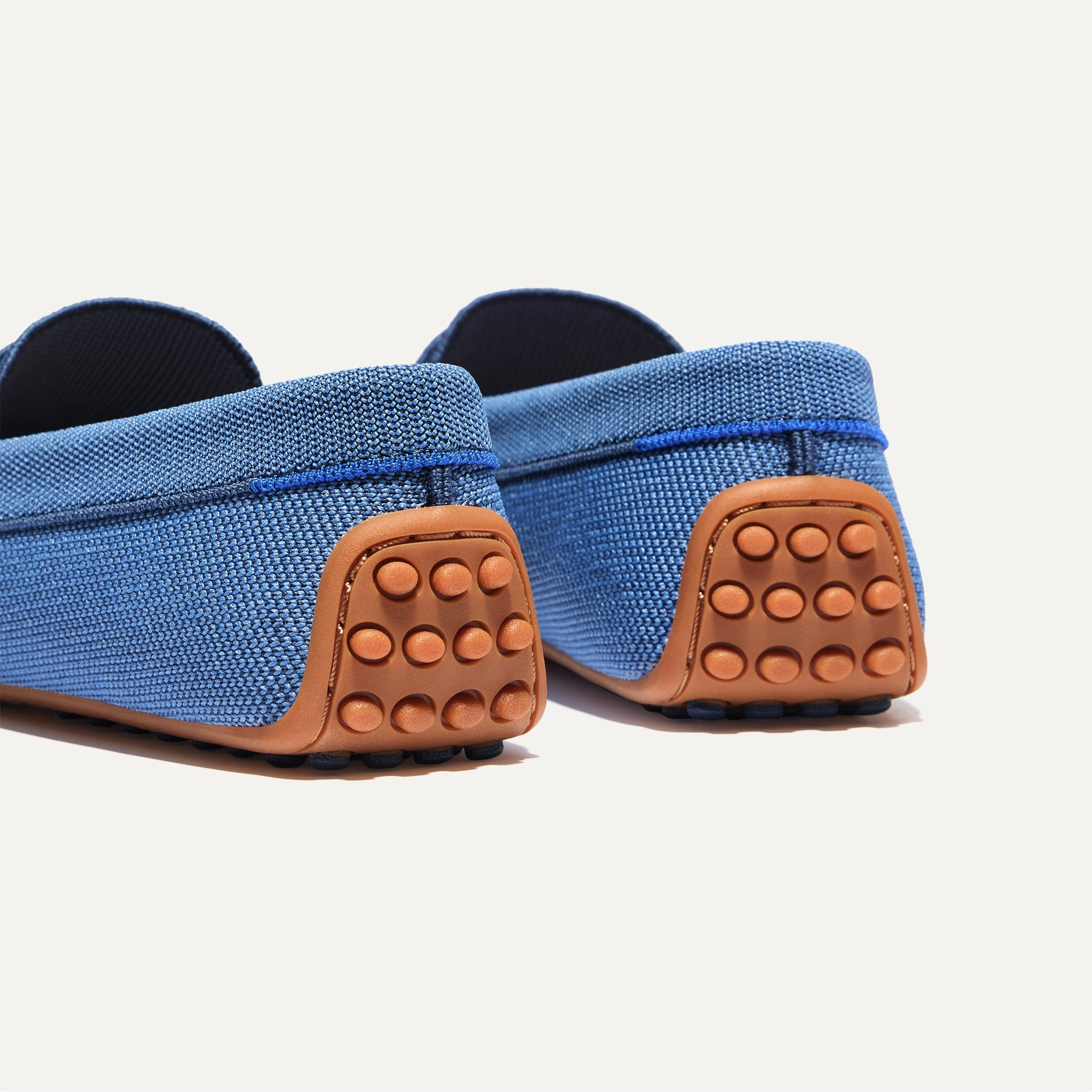 Supportive Pegged Outsole: Durable camel rubber outsoles with supportive pegs in navy. Feel a spring in every step.