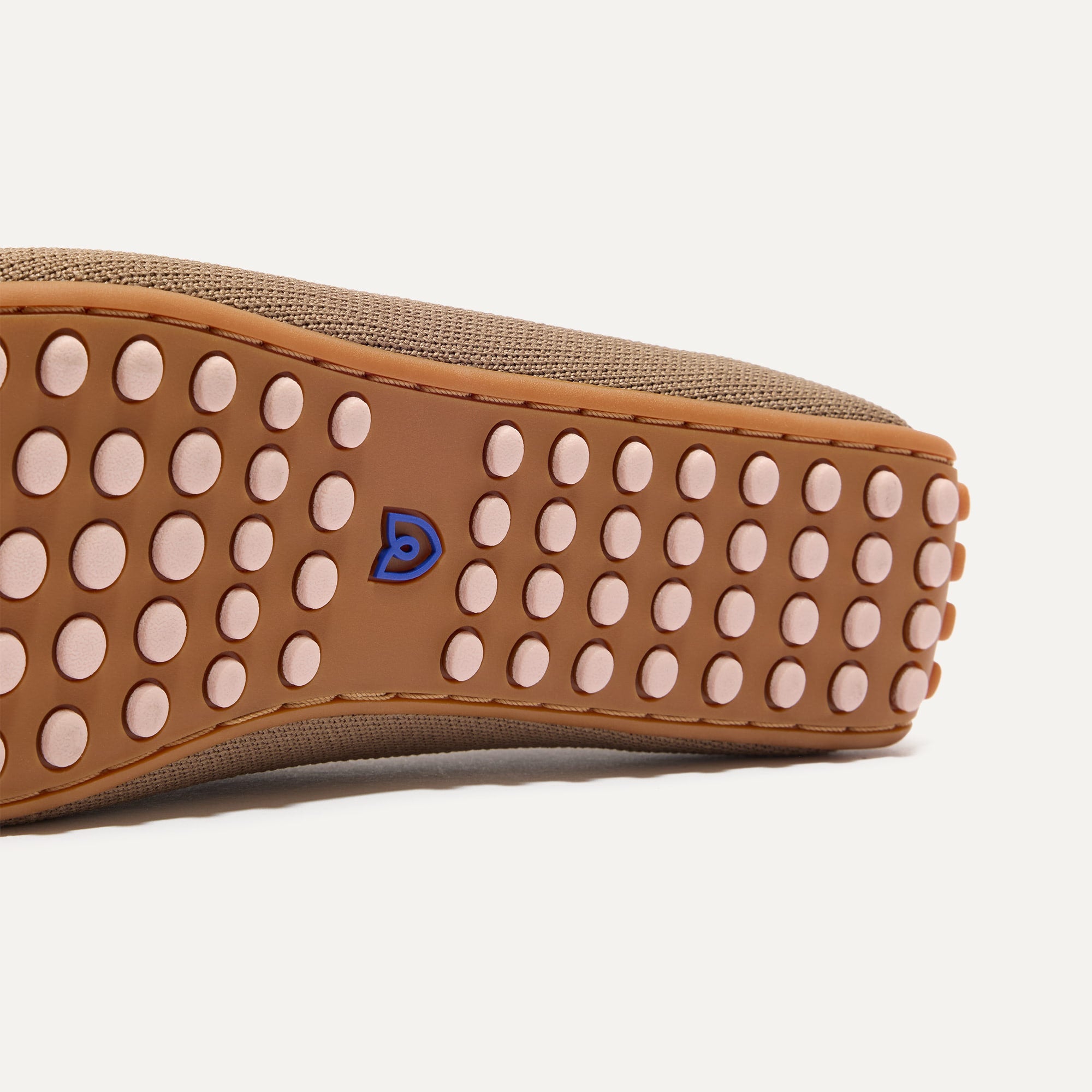 Supportive Pegged Outsole: Durable tan rubber outsoles with supportive pegs in muted pastel pink. Feel a spring in every step.