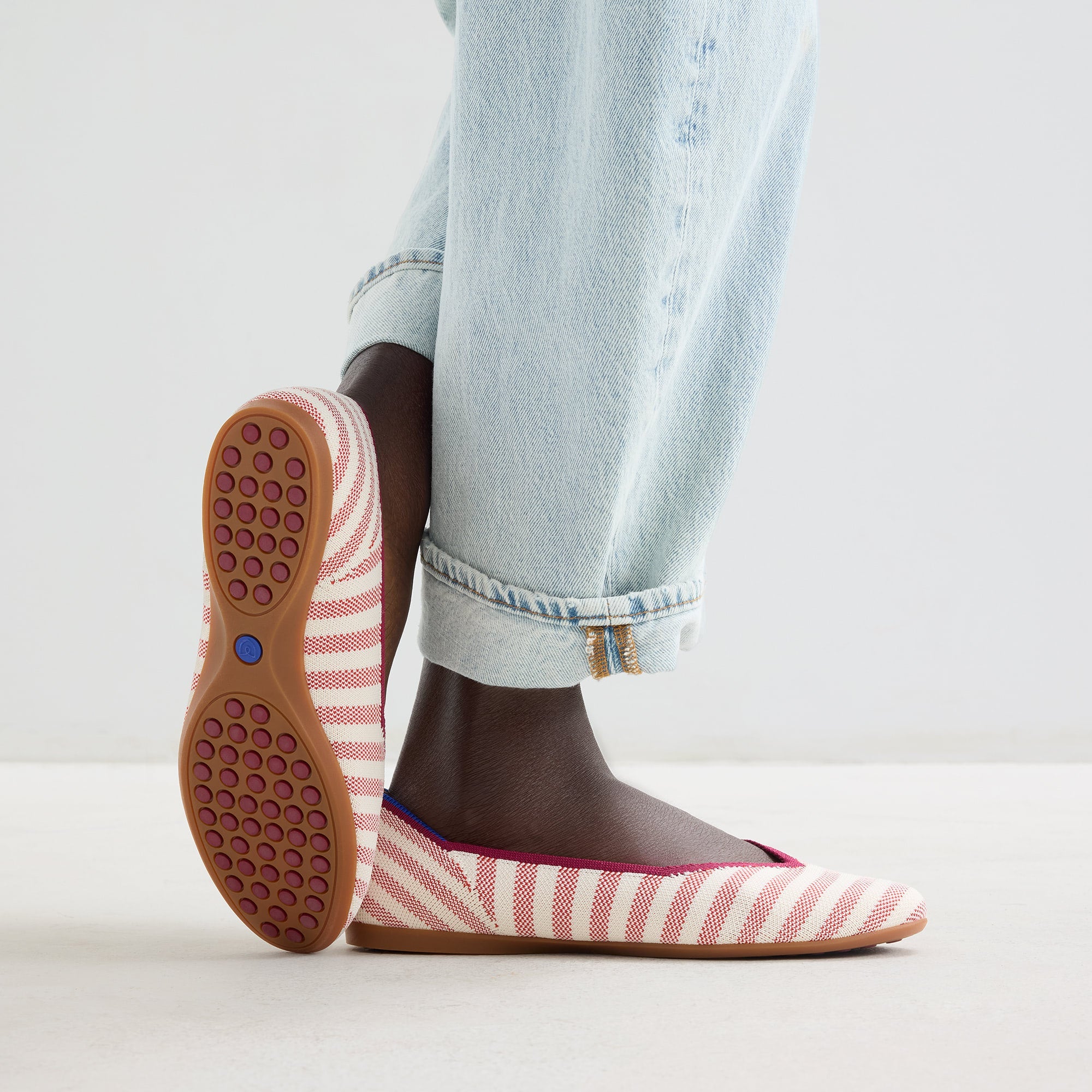 Enhanced Design: Flexible knit upper in coral and ivory stripes with a smoother, sleeker toe shape. Engineered for your every move.