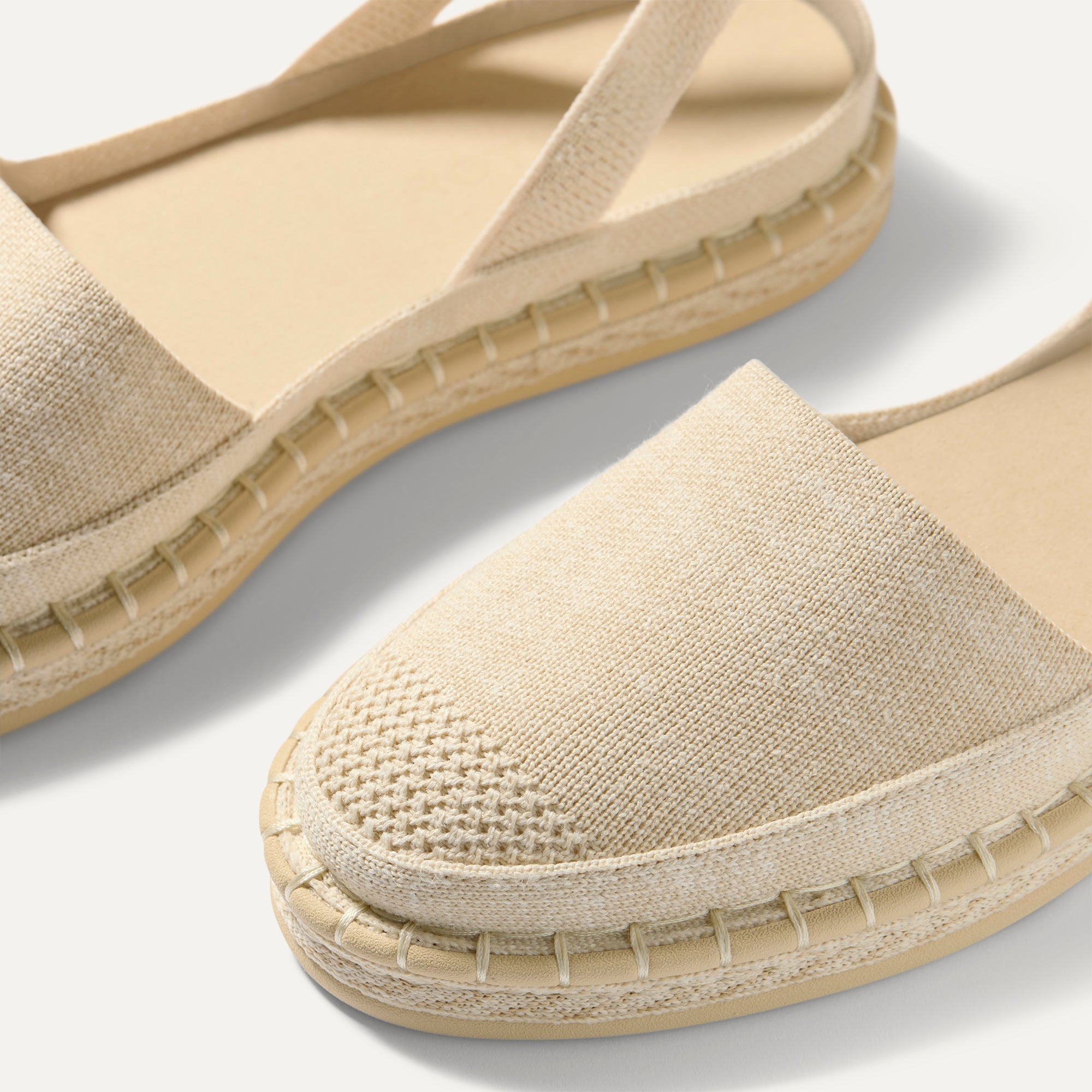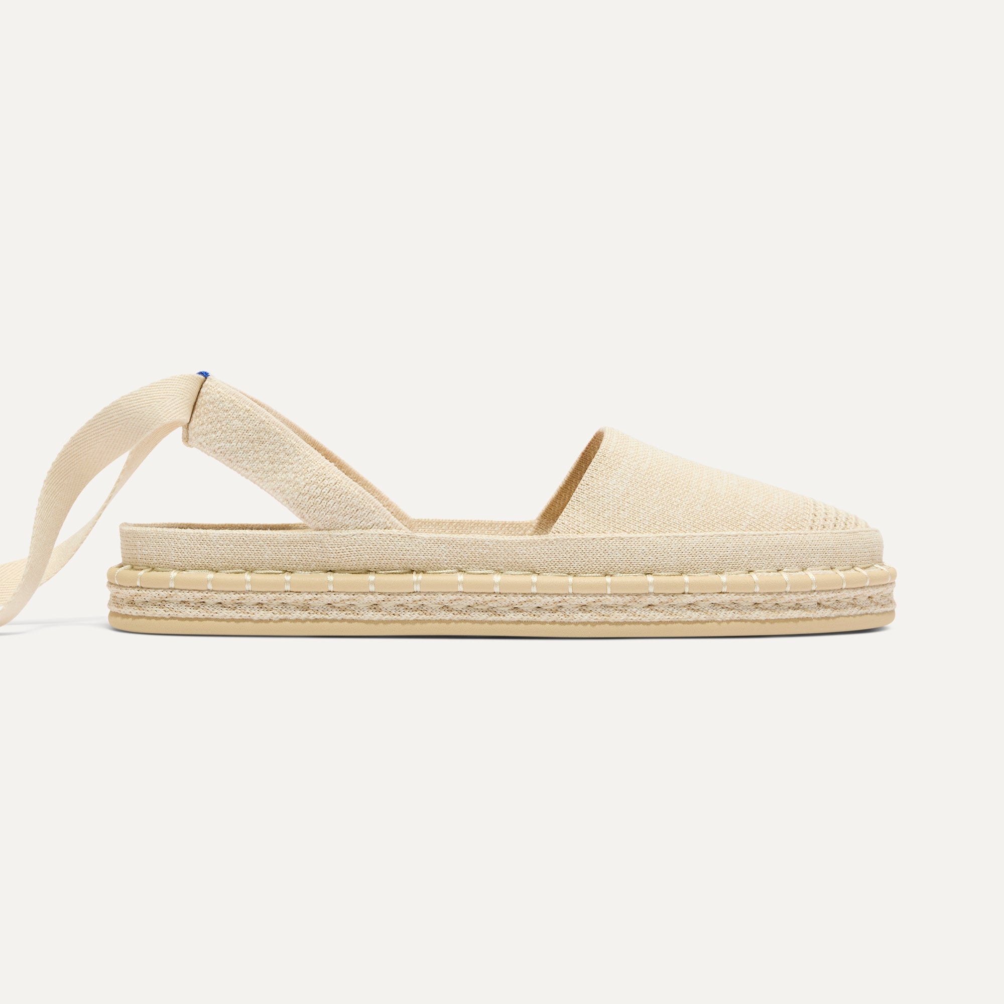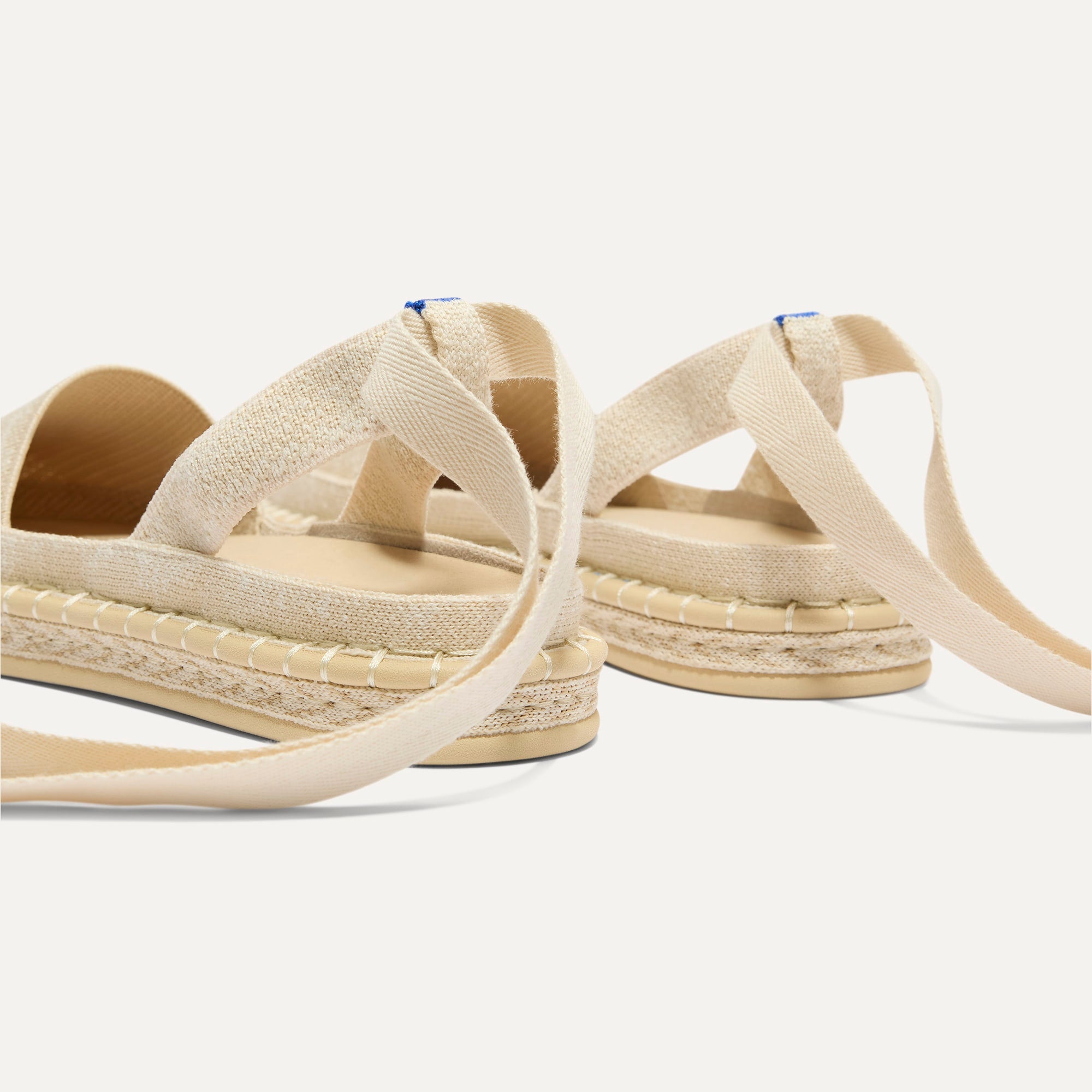 Classic espadrille look with removable ivory tie-up ankle straps.
