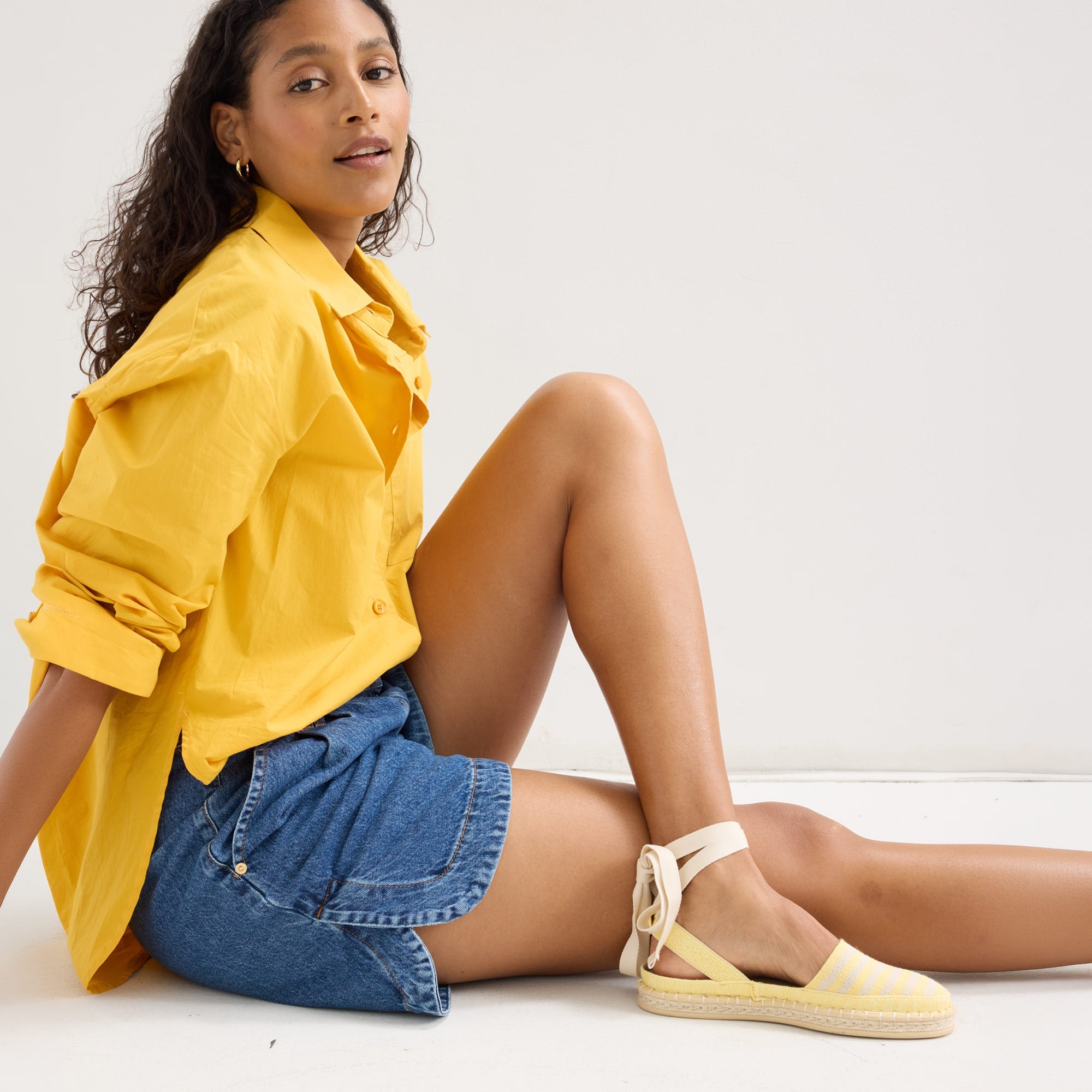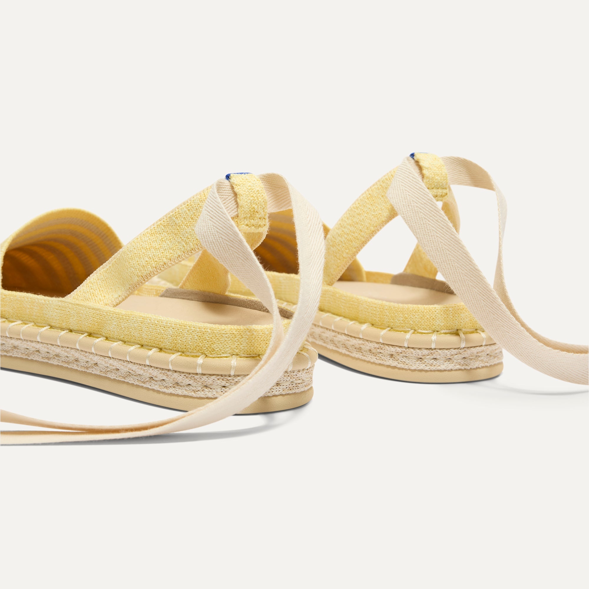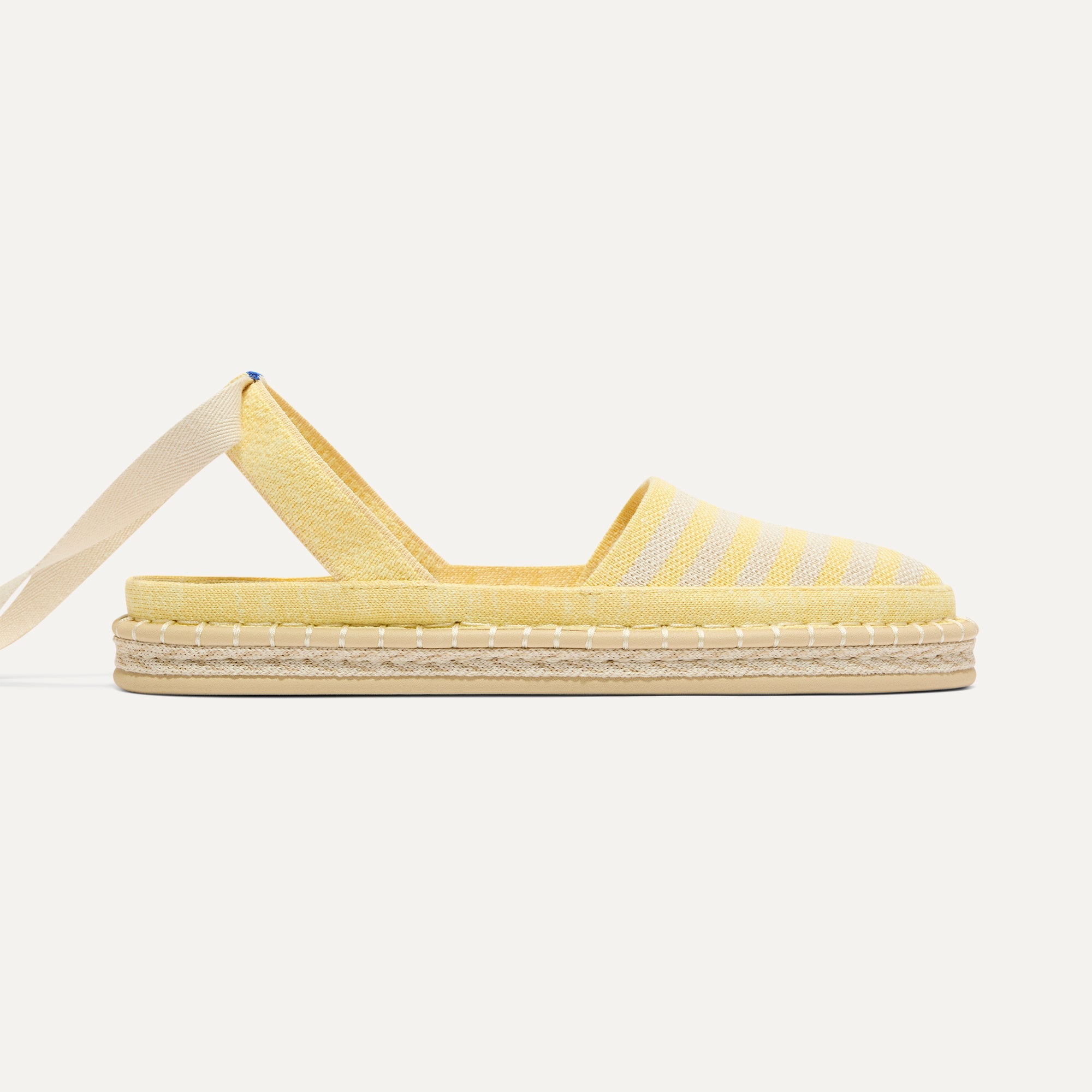 Classic espadrille look with removable ivory tie-up ankle straps.