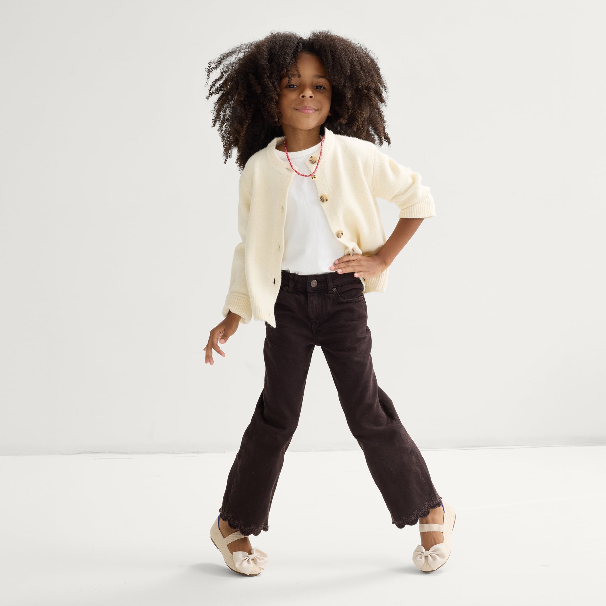 A big fixed bow in ivory on the vamp adds a playful detail.