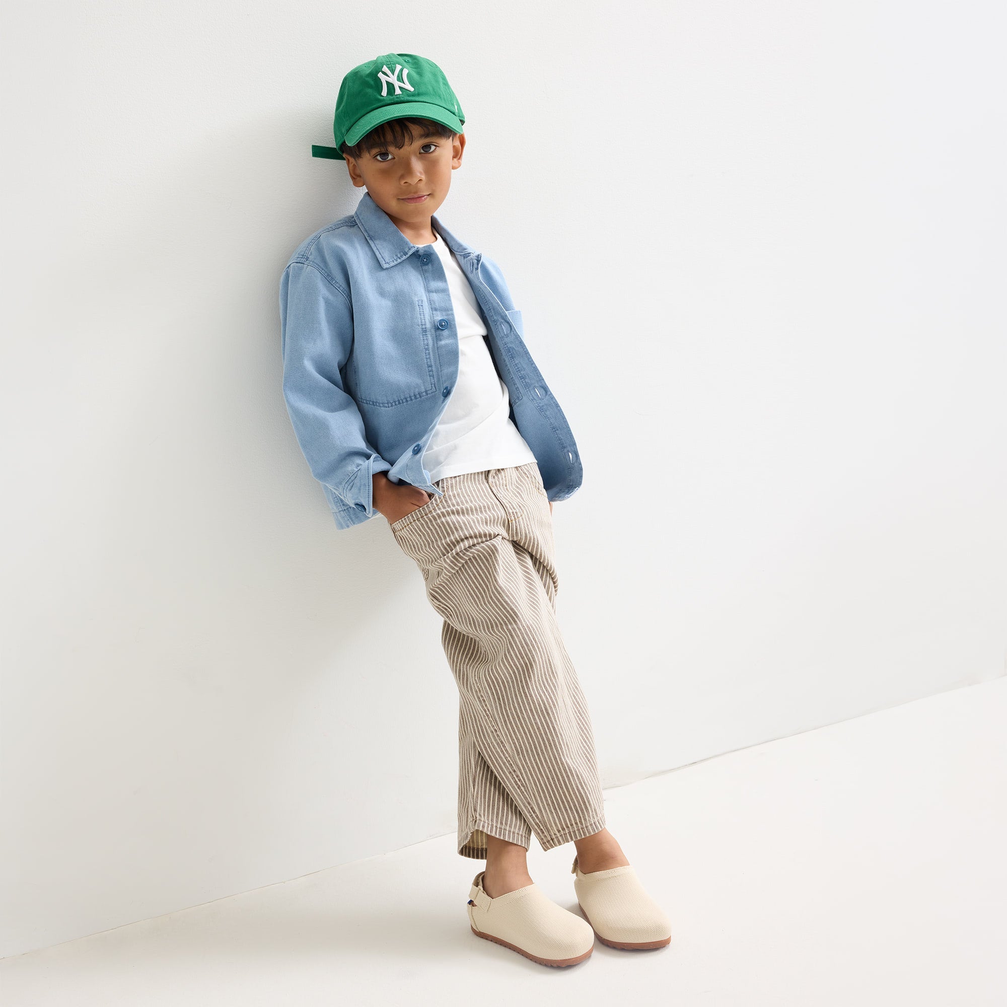Features a comfortable, adjustable hook & loop heelstrap in ivory to keep their little feet secure.