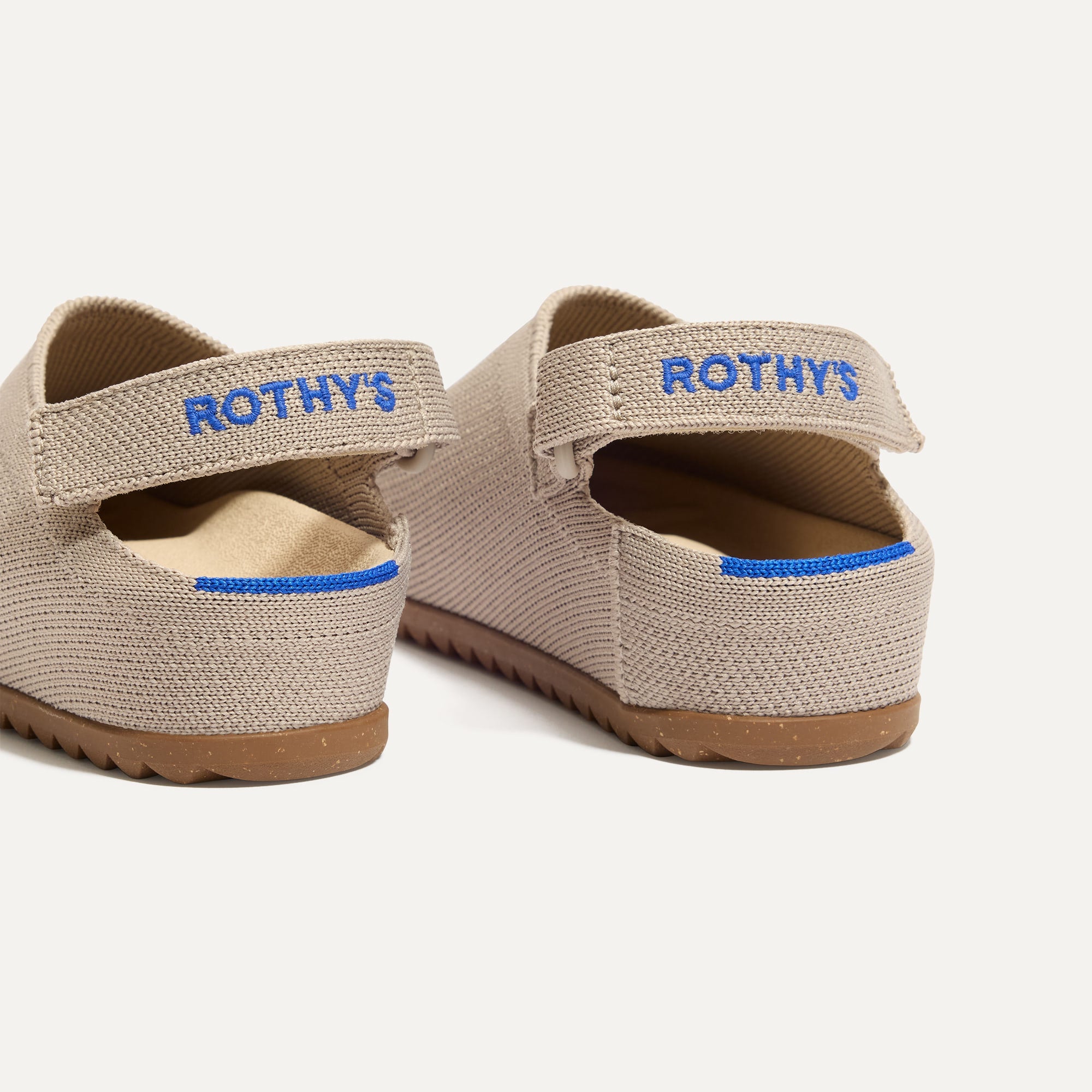 Features a comfortable, adjustable hook & loop heelstrap in soft taupe to keep their little feet secure.
