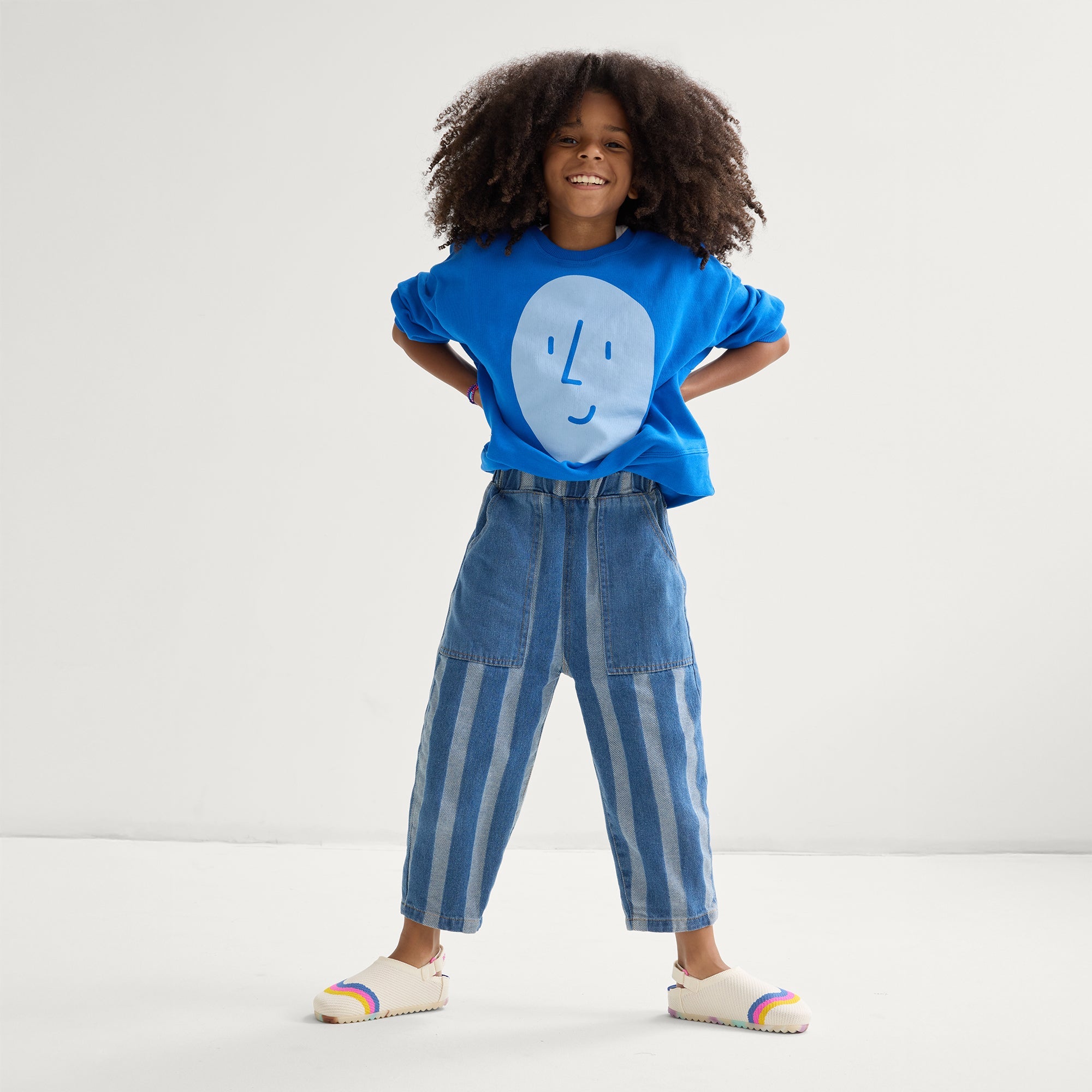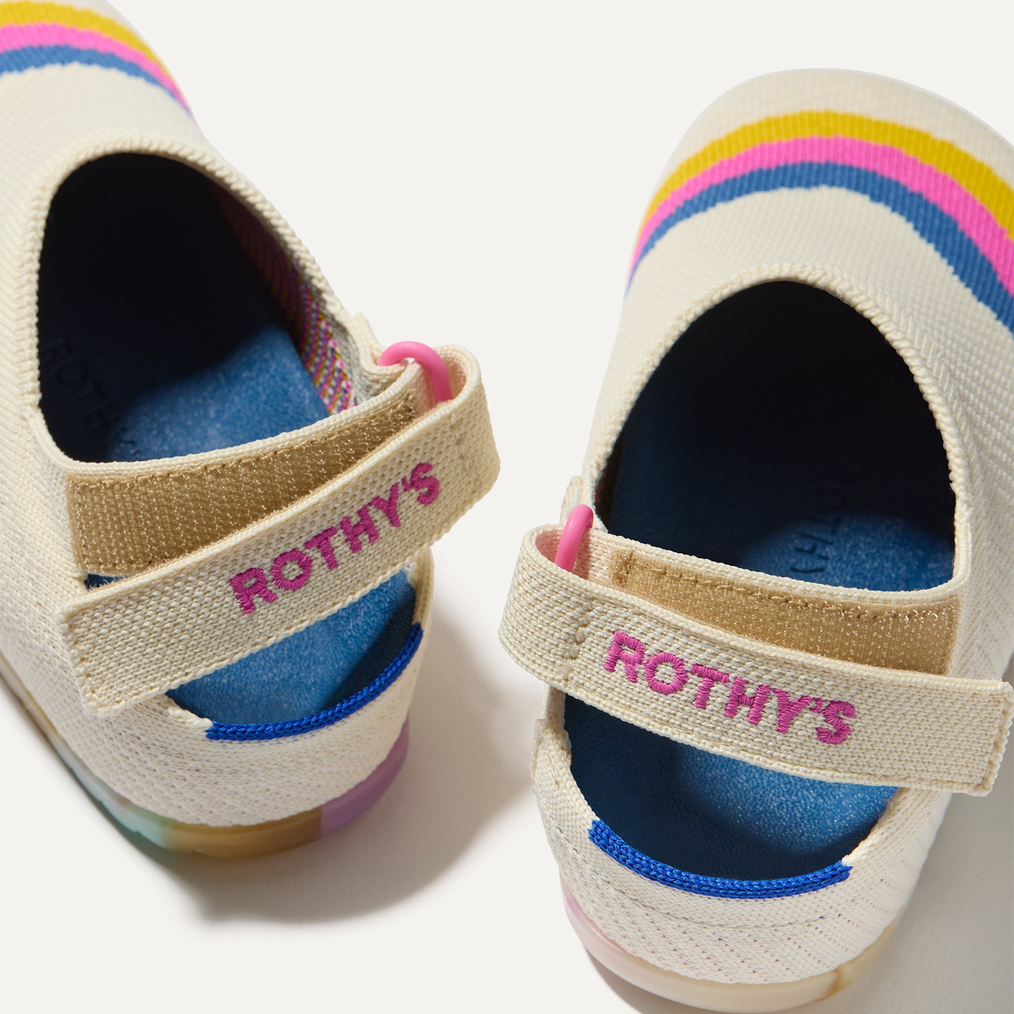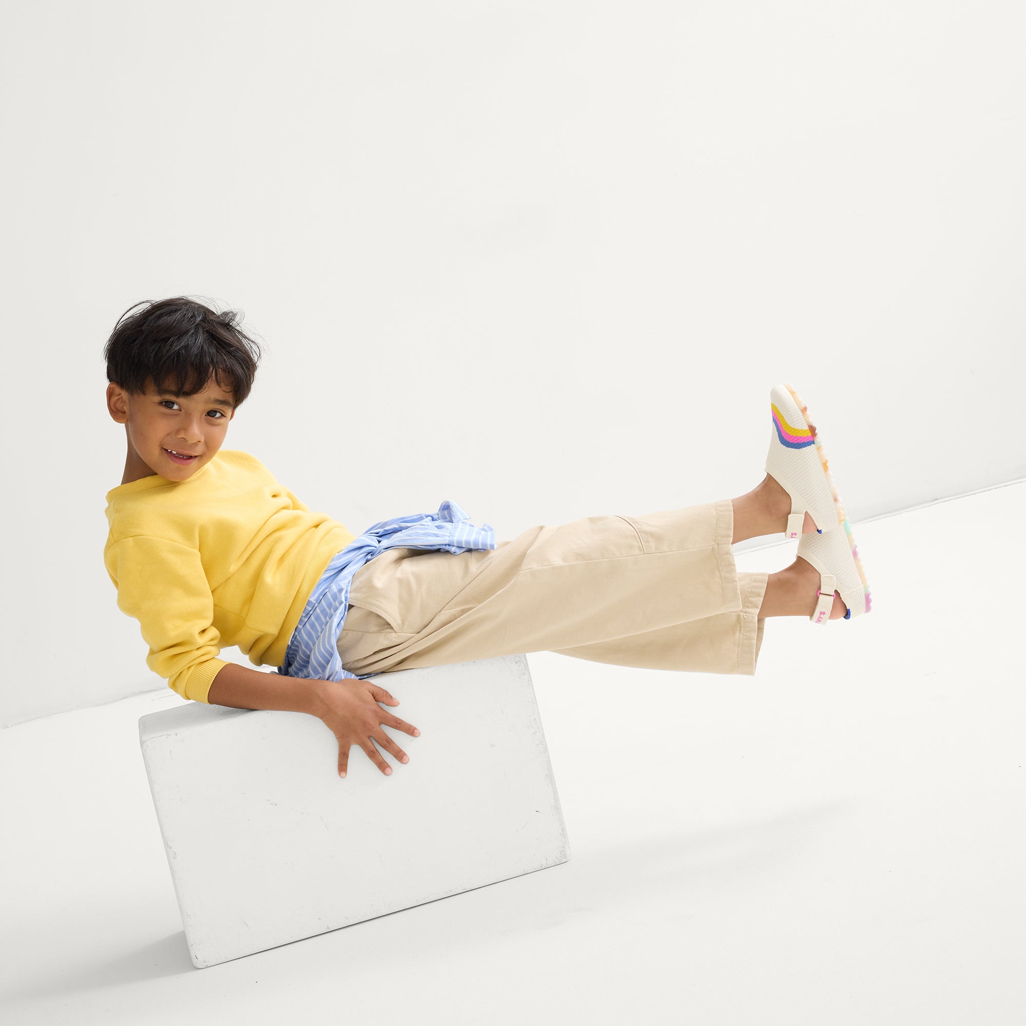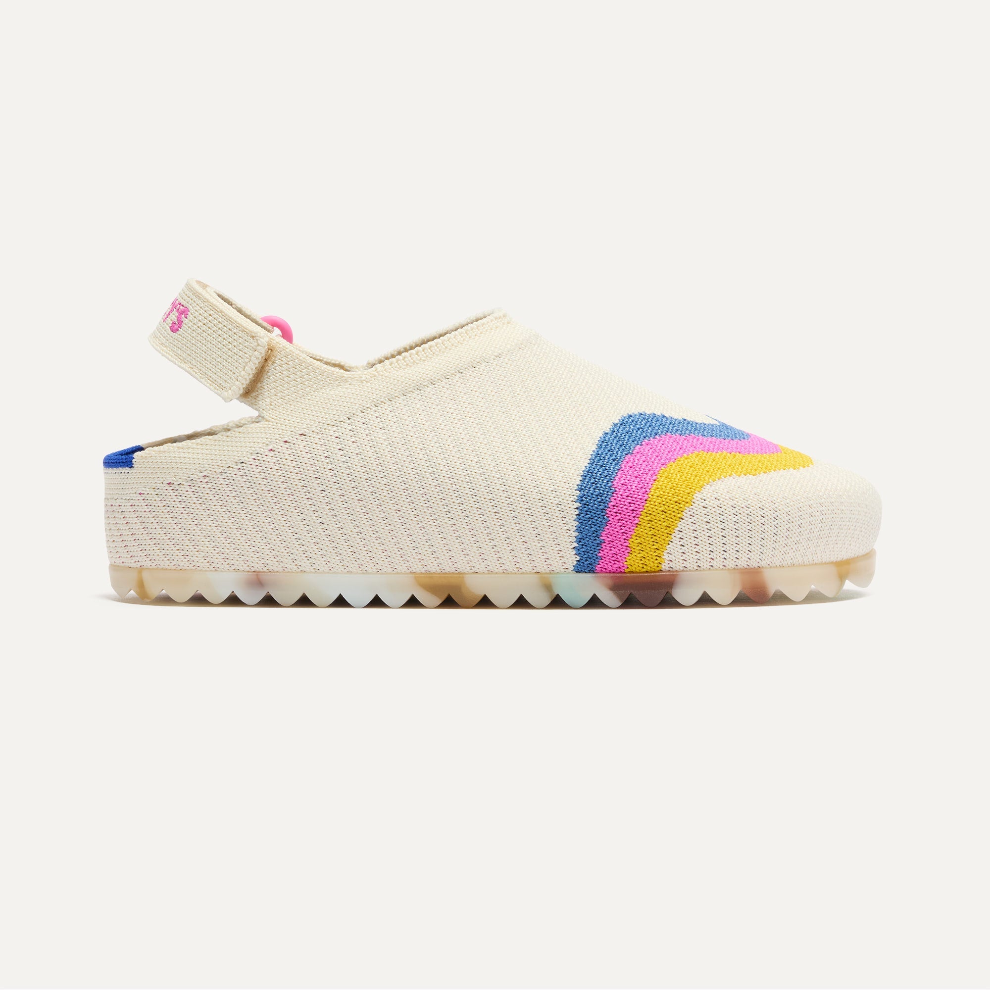 Features a comfortable, adjustable hook & loop heelstrap in white to keep their little feet secure.