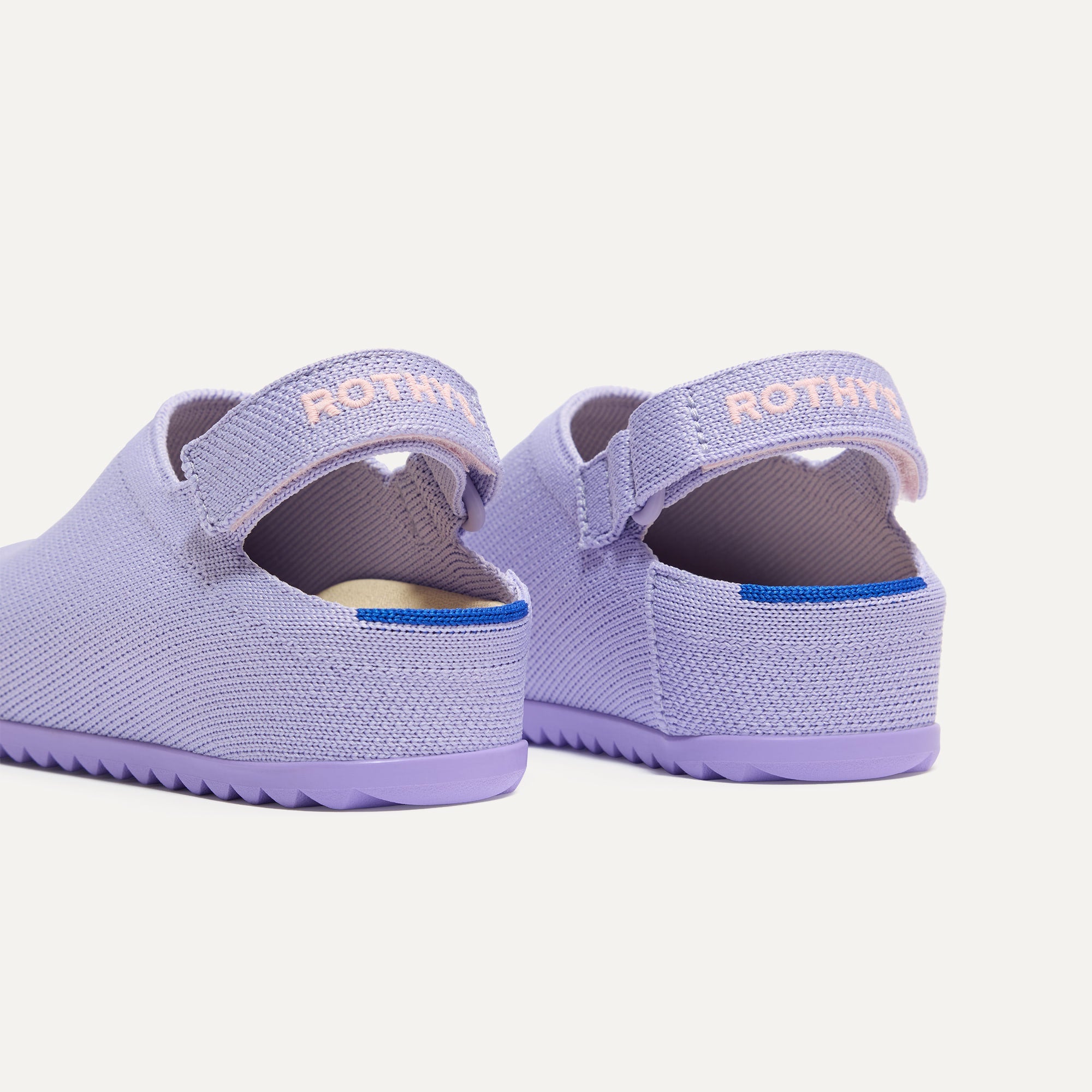 Soft, flexible rounded upper in light lavender.