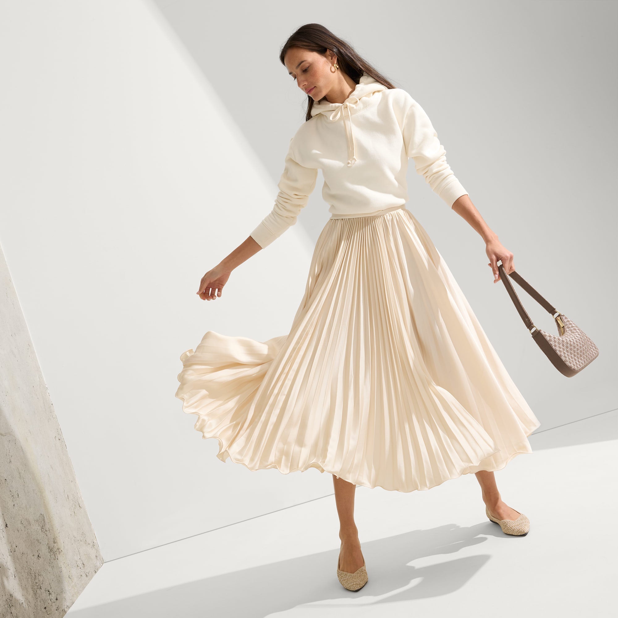 Sleek design in a shimmery metallic taupe basketweave pattern.