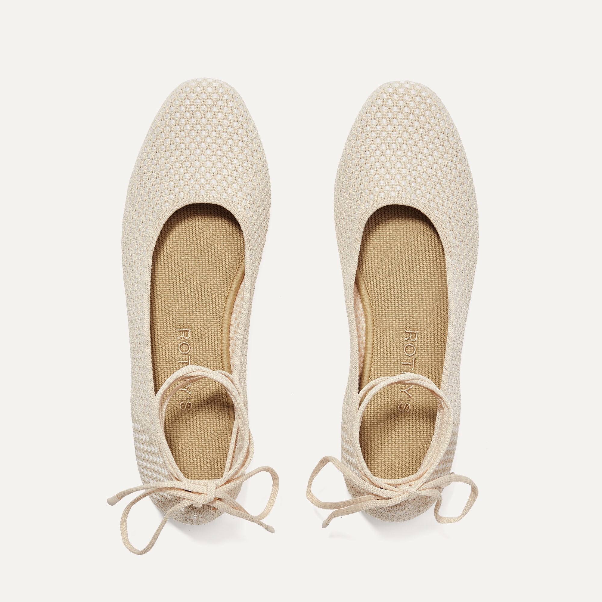 Comfortable insoles in beige and durable outsoles in tortoise shell.