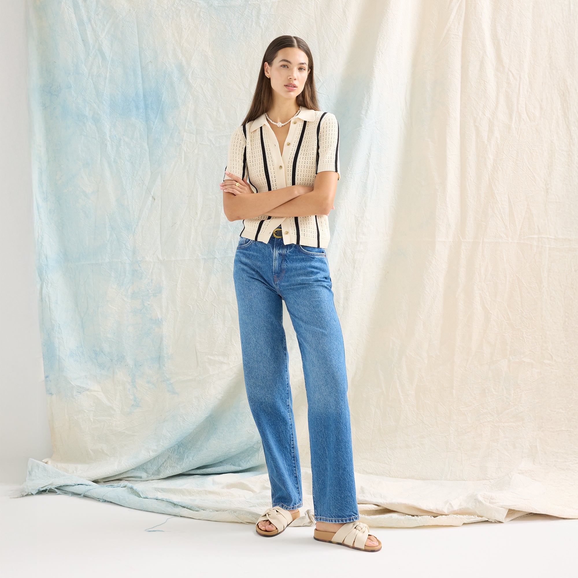 Softly knit upper in ivory features three wide straps twisted into a knot.